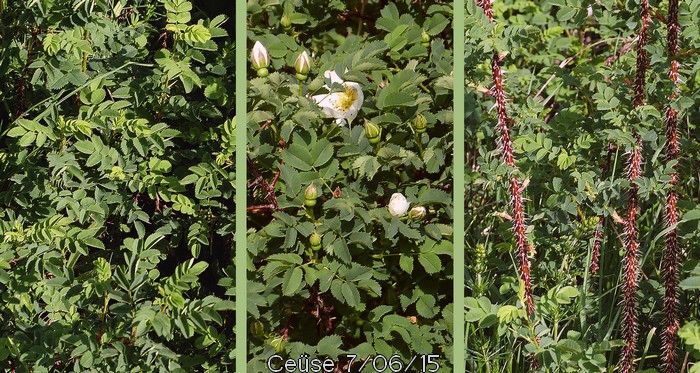 Feuilles pennées à divisions latérales sur deux rangs de part et d'autre de l'axe, à 5-9 folioles étroitement dentées, légèrement velues.