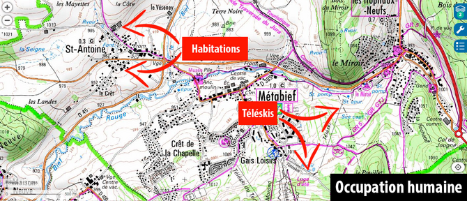 16 - Occupation humaine (maisons, parkings, téléskis, chemins de fer)...